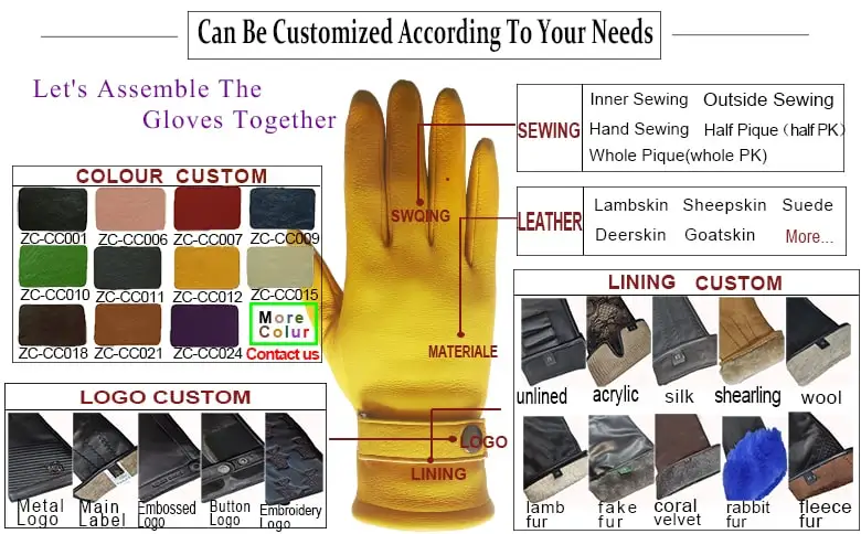 A:We specialize in producing gloves including all kinds of dress I warm/ winter leather gloves, mittens, driver gloves. Leather gloves with fabric patches I knit parts, or fabric 1 knit gloves with leather patches are also available.