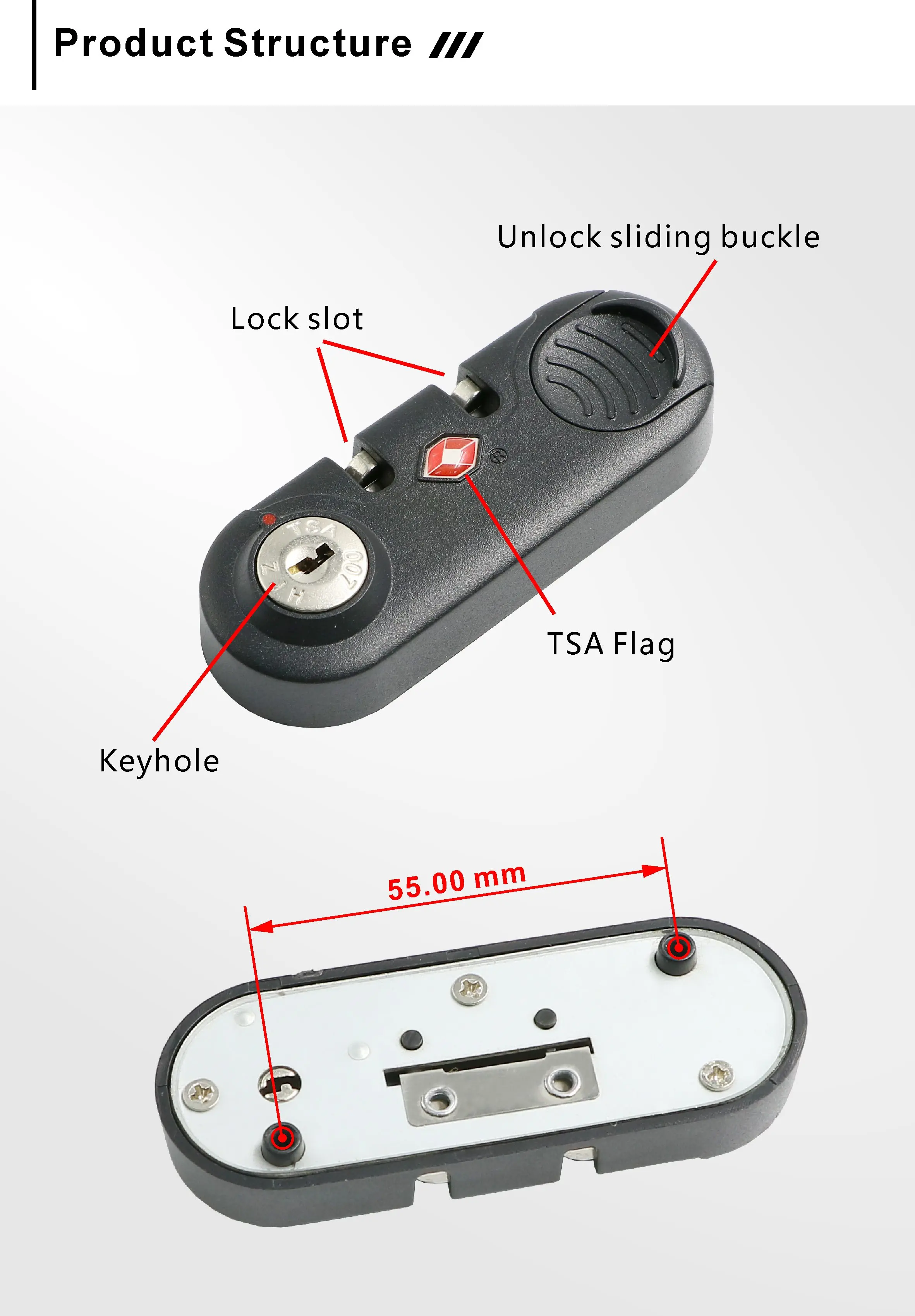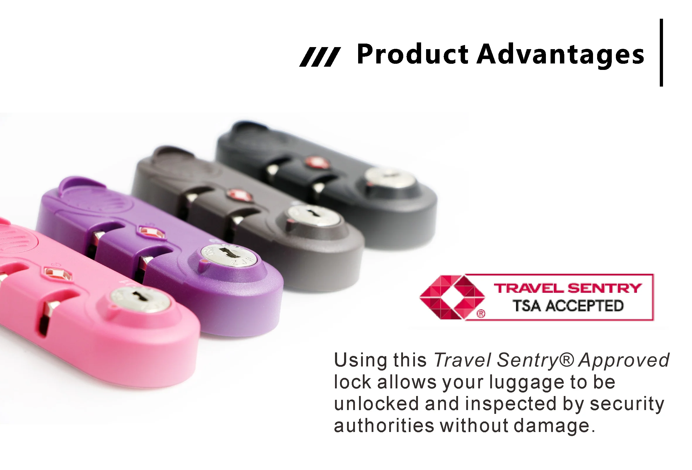 Product Advantages | 1,TSA flag, pass the security check easily. 2.Key unlock |