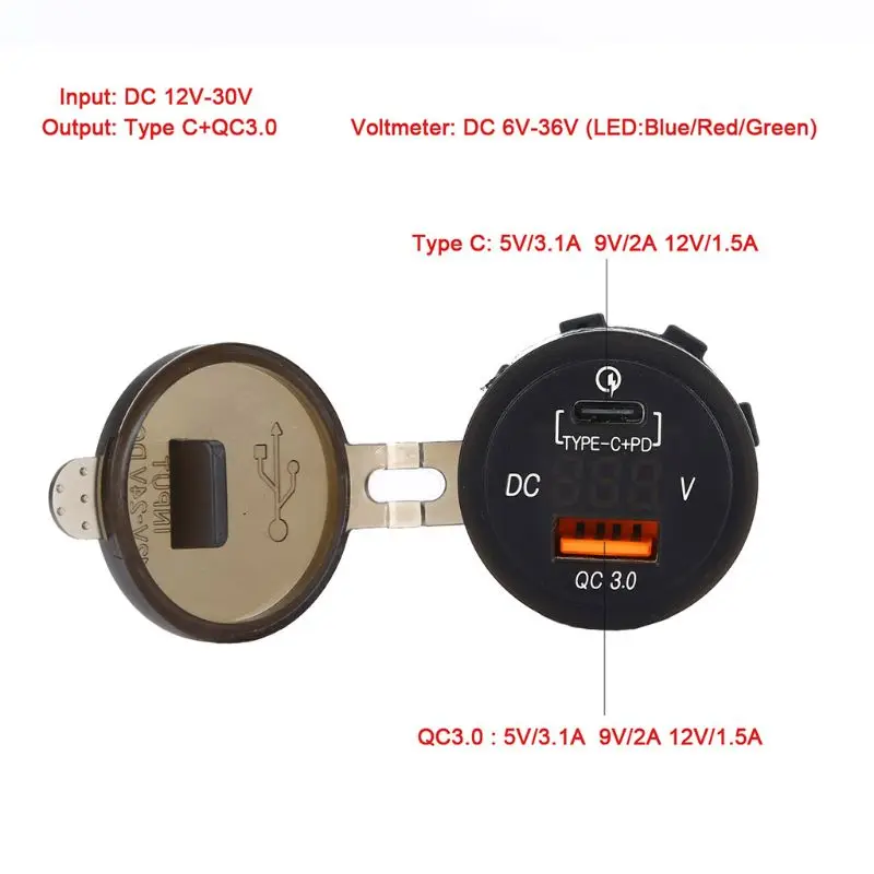 Product name | Waterproof type C PD QC3.0 usb charger with voltmeter for boat car bus |