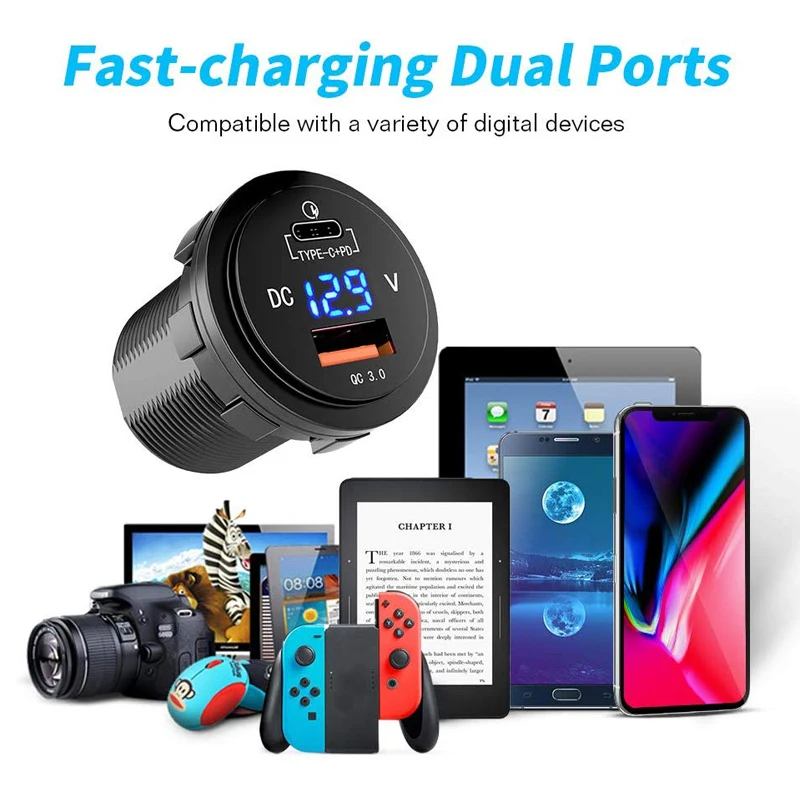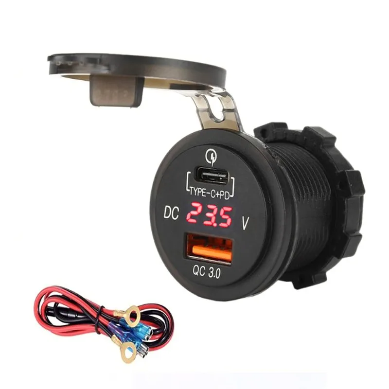 Waterproof type C PD QC3.0 usb charger with voltmeter for boat car bus