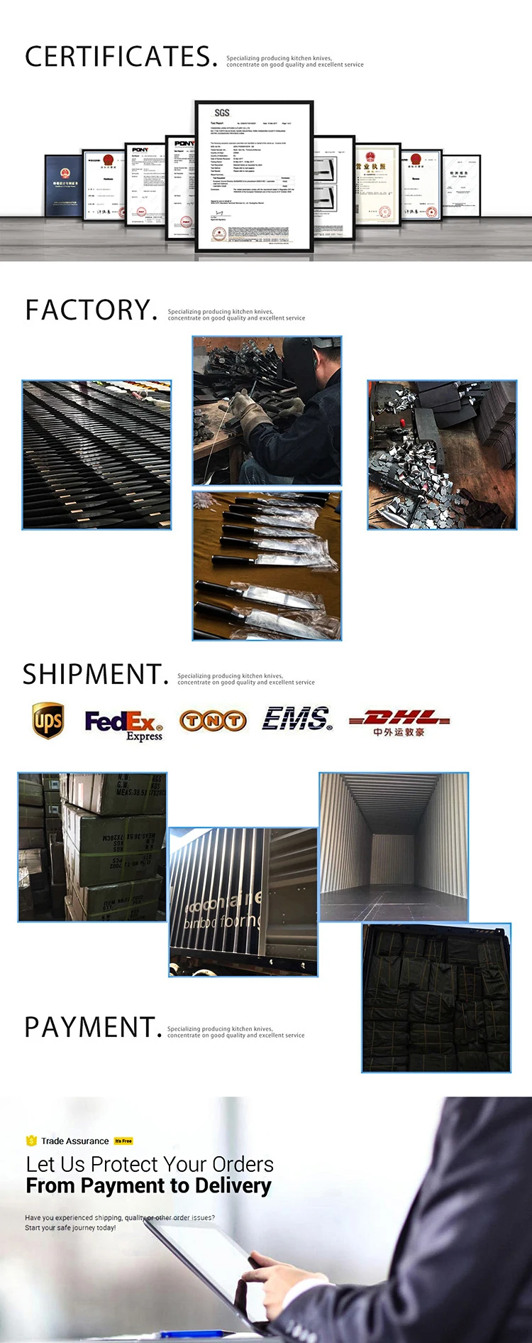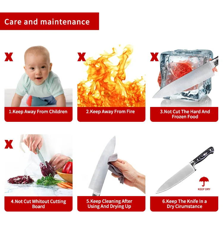 3.We have FDA.SGS.LFGB etc. certification for our knife product.