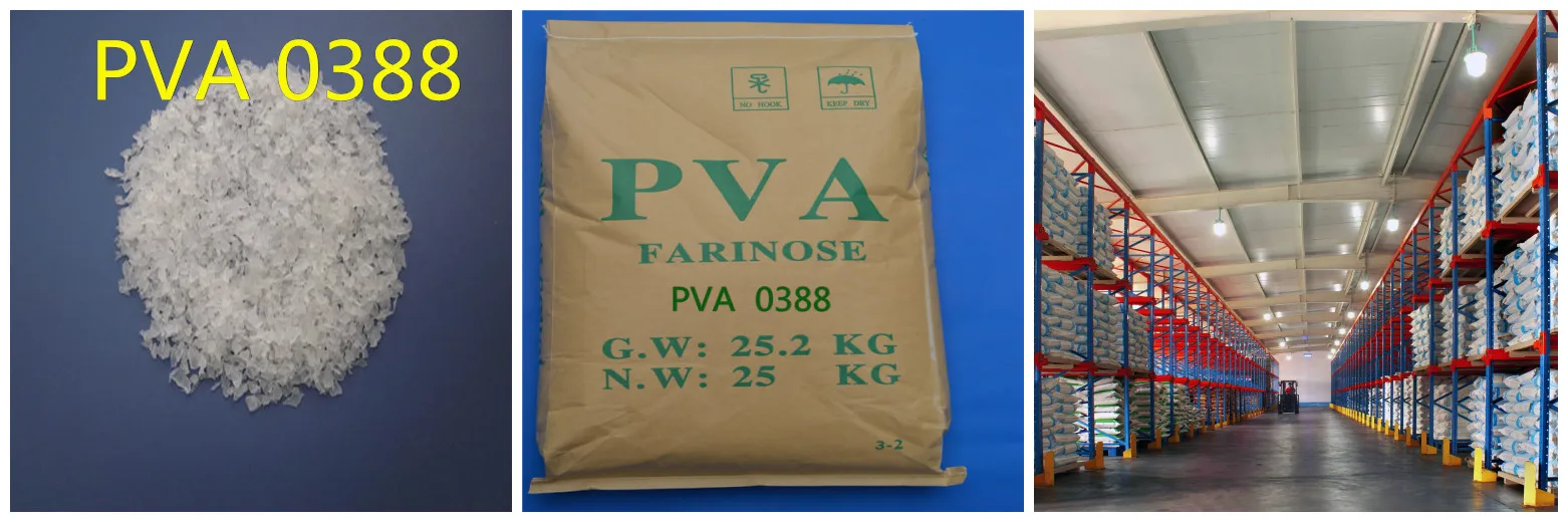 1,PVA 0388Ais mainly used for the feedstock of vinylon fiber.The vinylon staple yarn and vinylon tow-to yarn manufactured from the PVA0388exhibits white color,high strength,perfect hygroscpy,abrasion resistance,sunshine resistance and corrosion resistance.They can be blended with cotton,wool and glue fiber for weaving separately ,which is widely used for clothing ,tarpaulin ,tire cord ,fishingnets and ropes, and they are also an idea substitute of asbestos.