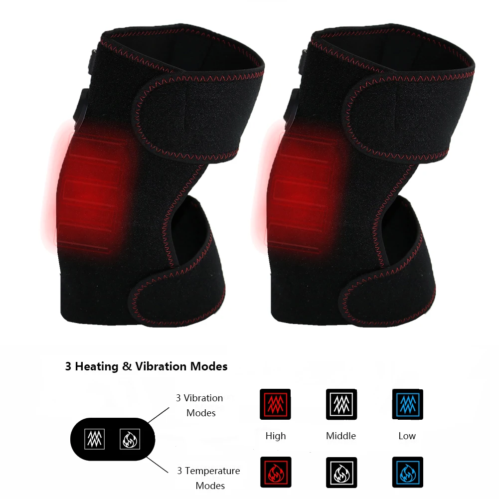 Heating & Vibrating Massage Helps Knee Pain and Discomfort. This Knee brace wrap provide 3 Heating levels and 3 Vibrating levels right in your certain knee area, for knee arthritis pain relief and injury recovery.