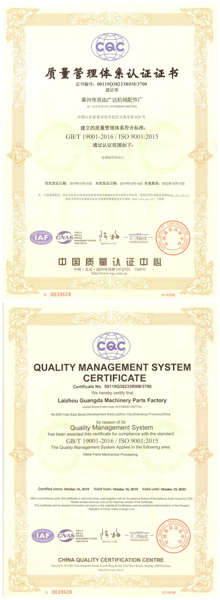 Certification | ISO9001:2008 | ||||