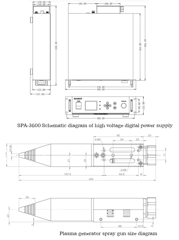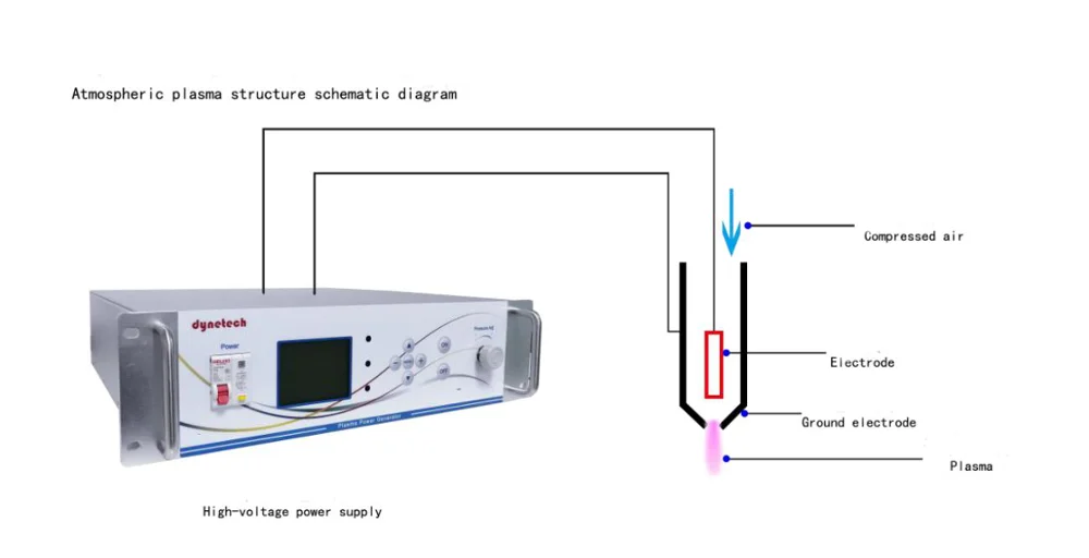 SPA-5600 Atmospheric Plasma Cleaner Structure: It is mainly composed of high voltage digital power generator, plasma generating device spray gun and control system.