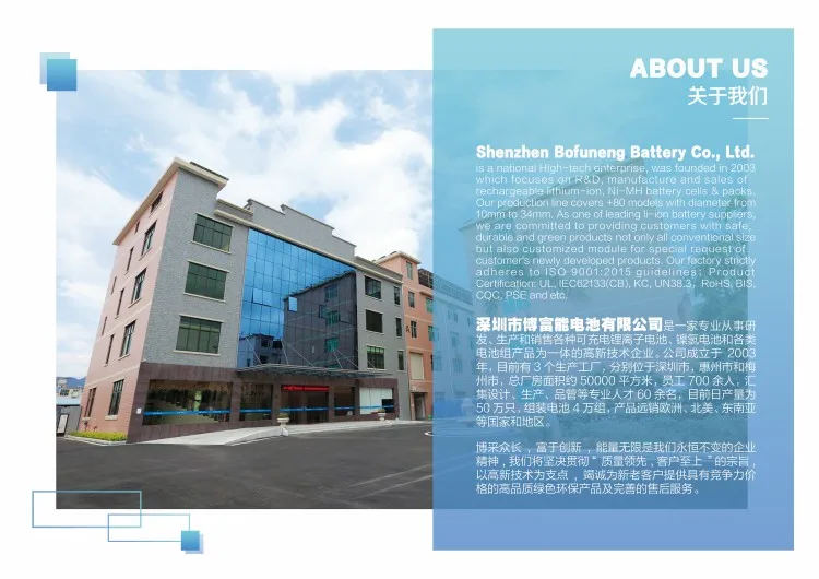 Our Services & Strength R&D, production and sale of rechargeable Cylindrical li-ion battery cells and packs. Mainly NCM&LFP.