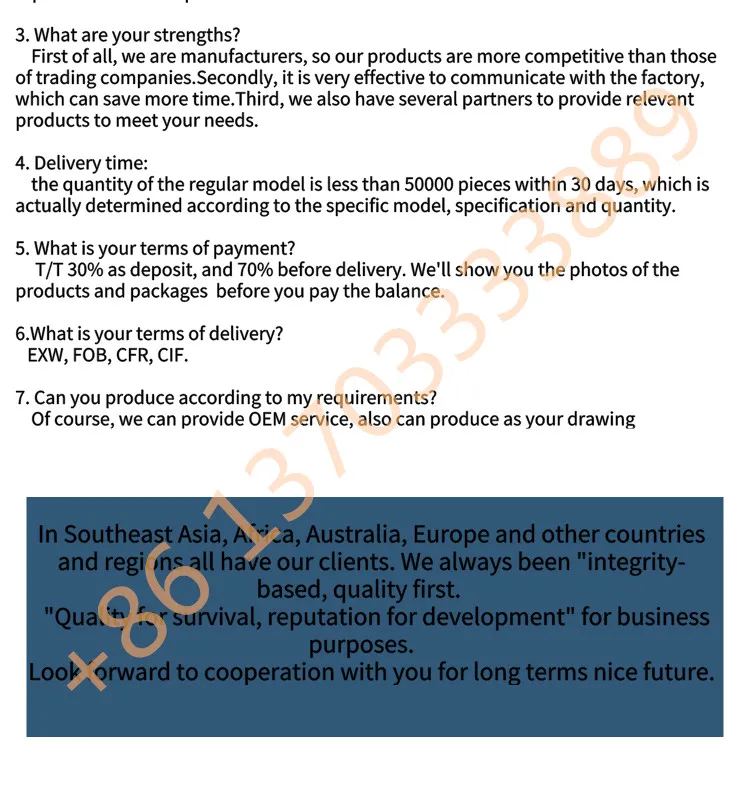 Our products are mainly exported to over 30 countries such as Mexico,Malaysia,Japan,Chile,Jordan,Iran,Turkey, Lebanon,Thailand and etc.