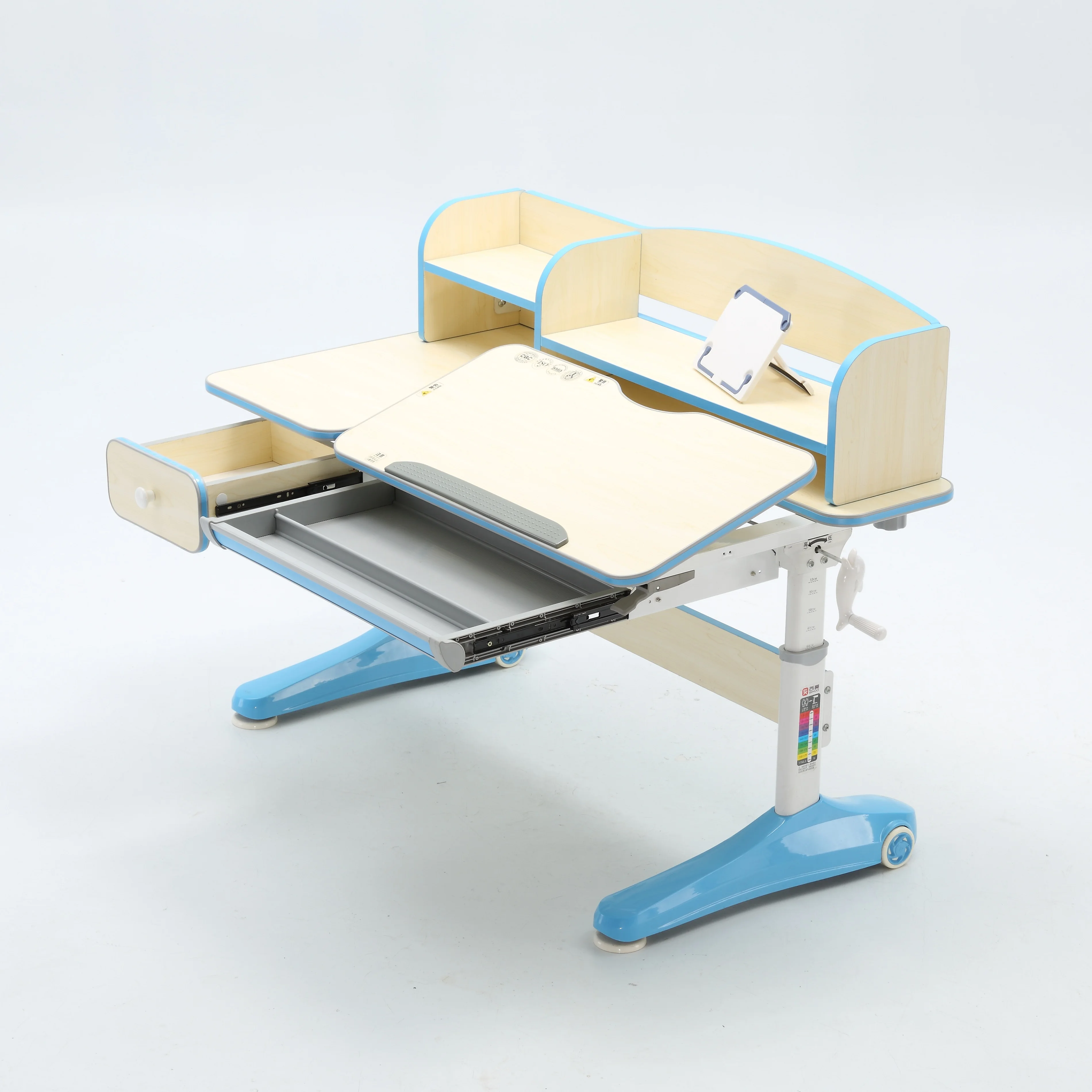 Features | 1. Material : Harmless solid wood and aluminium alloy 2. Mechanism : Height Adjustable Mechanism and flip computer desk 3. Advantage : fit 3-18 ages children use , design depend on the ergonomic |