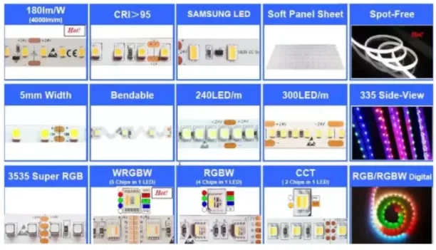 Color: 2700/3000/3500/4000/5000/6000K, Dual White, RGB(W), RGB+CCT, 160degrees lens