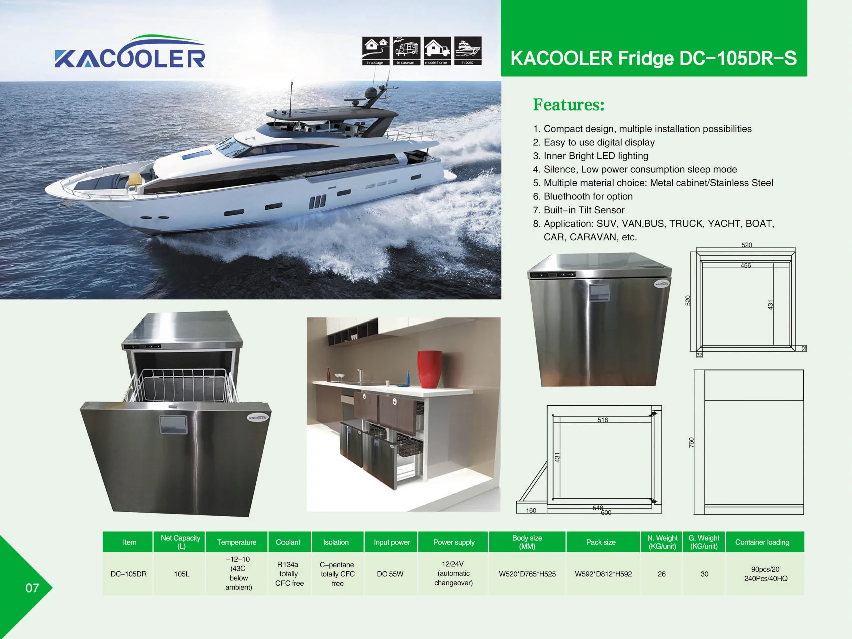 NET CAPACITY | 105 Liters | POWER SUPPLY | DC: 12V; DC: 24V | |||