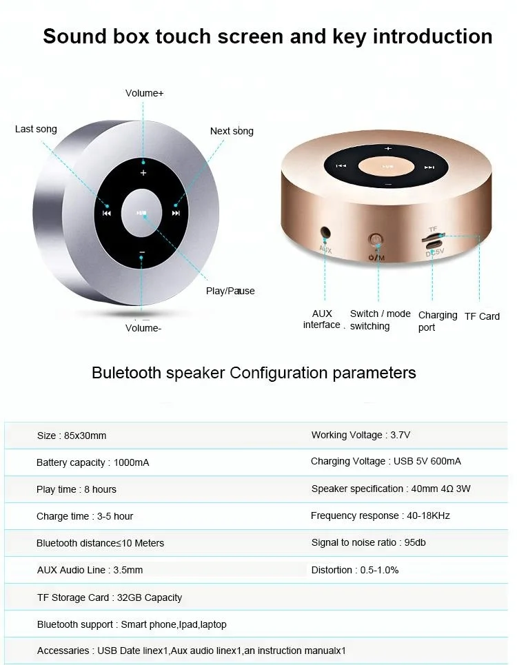 1. TOUCH SCREEN DESIGN-Different from Traditional Speakers, this mini speaker adopts smart sensitive touch screen design, gently touching with fingertip easily achieve switching the songs, volume control and taking the calls.