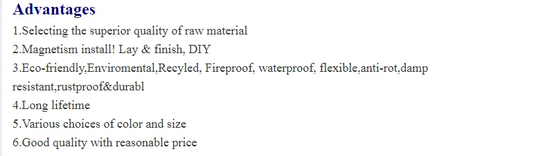Waterproof, Antislip, Easy installation, Glue free, Sound absorption,