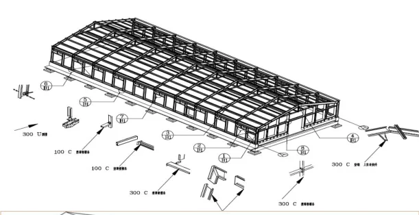 square tube, C section steel components, roof and walls using fiberglass sandwich panel,it is