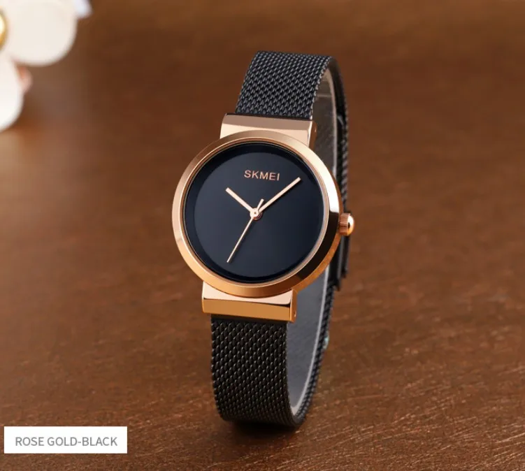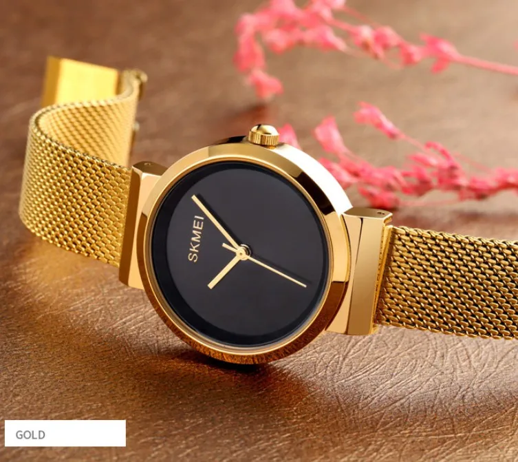 Small Size Custom Logo 1595 Golden Lady Women Stainless Steel 3 atm Time Hour Quartz Analog Watches