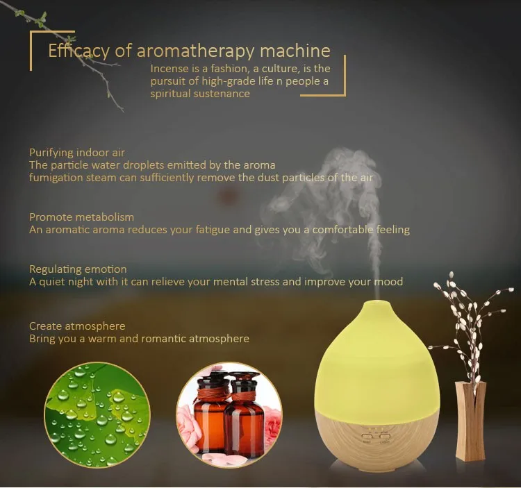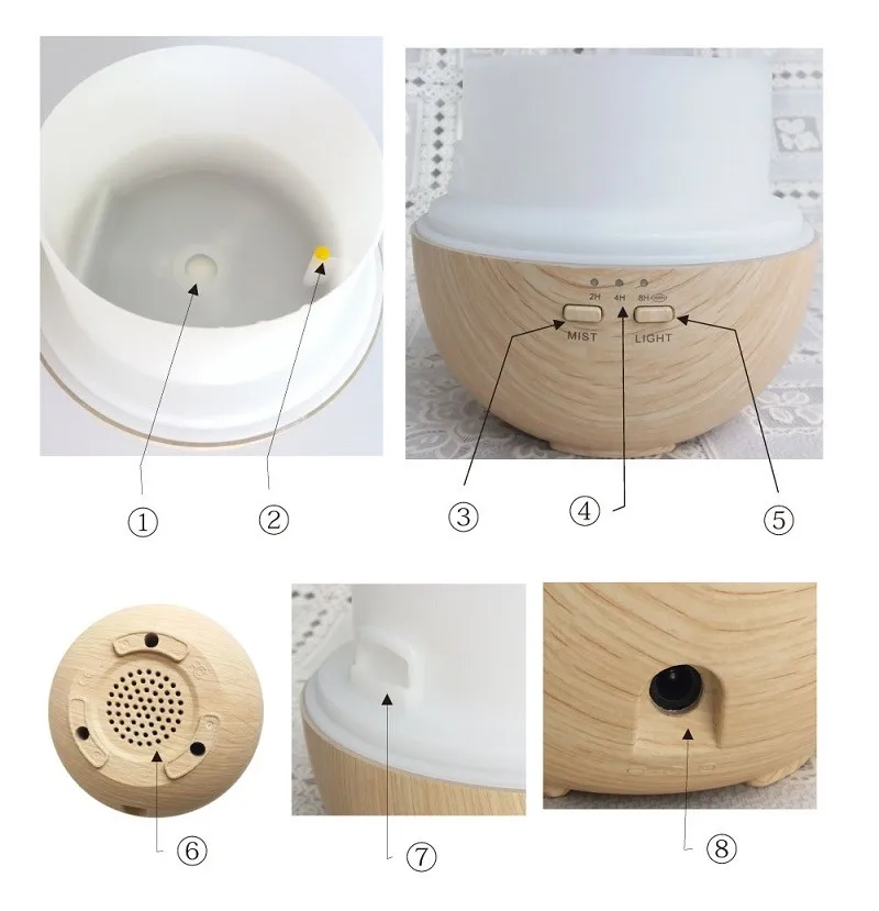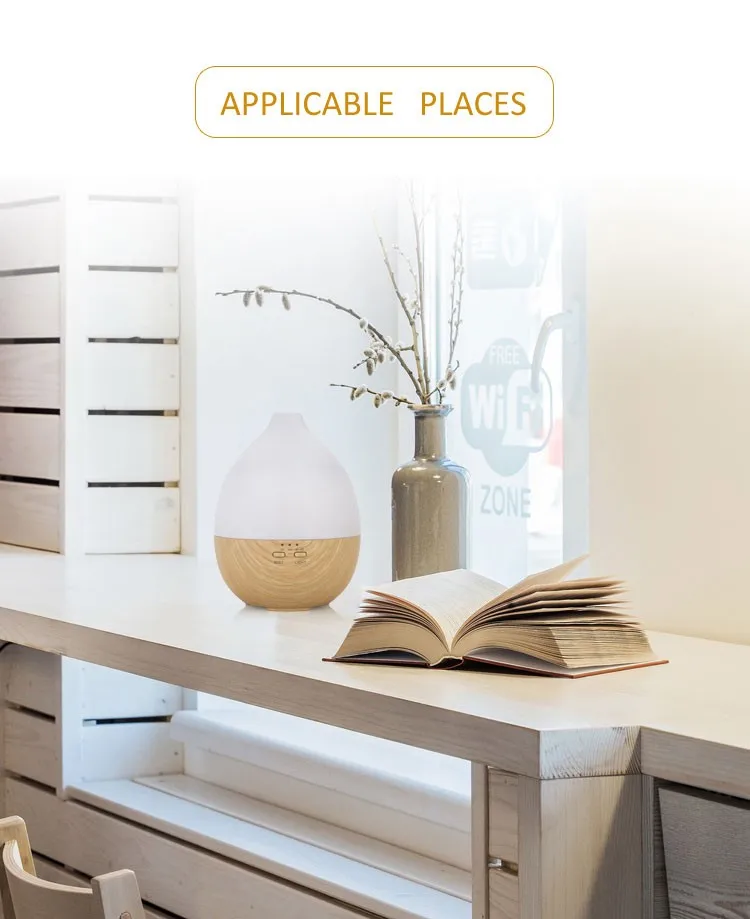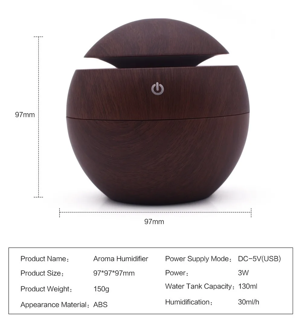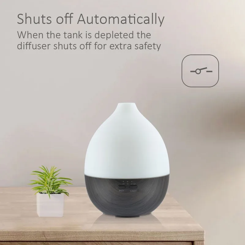 This aroma diffuser is equipped with a fan at the bottom, to facilitate cooling, protection devices.Diffuser coated with wood grain, which makes it look very natural and primitive. With compact and portable design, the cap of the aroma diffuser is easy to take off, you won't bother to unscrew the cap with great force when your hands is wet. Just gently take off the cap, add water and essential oil, enjoy high-quality life.