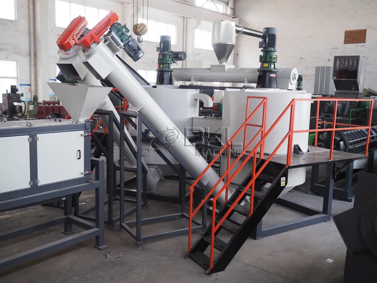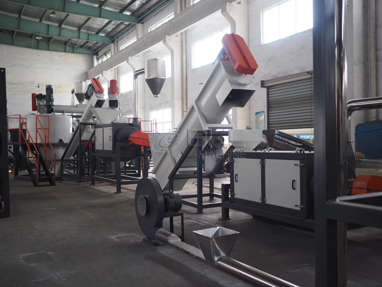 * High speed Friction washer( Scrub washing machine): High speed friction washing could achieve a good cleaning effects through the blades on the beating and spray. This machine is suitable for broken film and Plastic flakes washing.