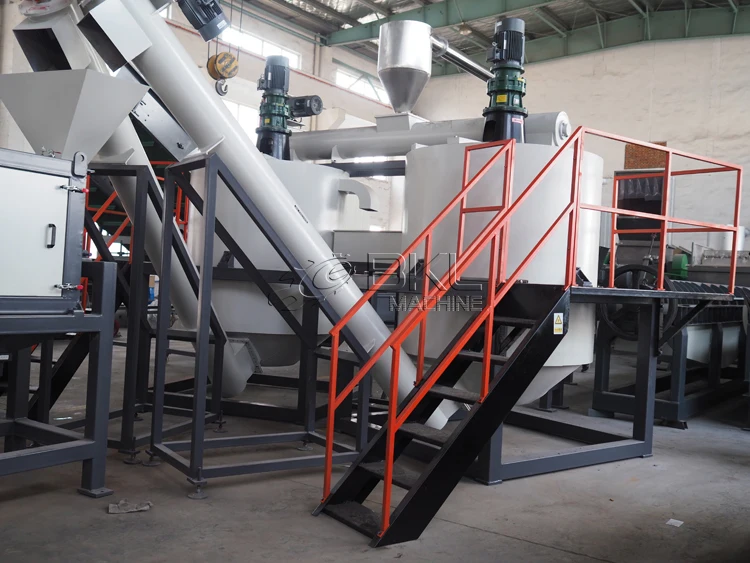 * Pre-washing: This machine has a big volume should work with hot water with high temperature. It mainly used for pre-washing the bottles before crushing and removes some contamination out. ( PVC bottles after go through the hot water may change colorand could be sorted out further.)