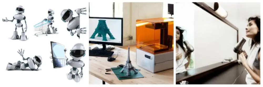 < Robots> <3D Printers > < Hairdryer >
