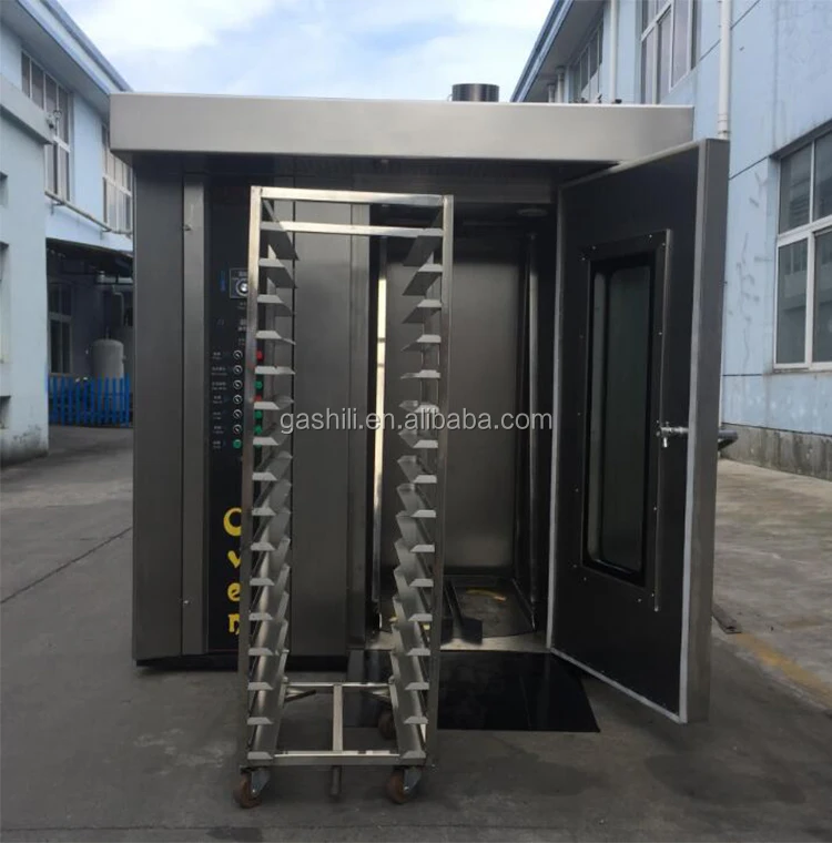 This rotary baking oven can be divided into three type, including electric, gas and fuel oil. It can be used for baking various kind of bread, cake,moon cake, cookies, walnut cake, pastries and many other kinds of biscuits. The overall machine adopts assembled structure, movable grill uses hook to rotate. It also adopts blast to force hot air circulation, improve the heat transfer effect, reduce the heating time to save energy.This rotary baking oven can be divided into three type, including electric, gas and fuel oil. It can be used for baking various kind of bread, cake,moon cake, cookies, walnut cake, pastries and many other kinds of biscuits. The overall machine adopts assembled structure, movable grill uses hook to rotate. It also adopts blast to force hot air circulation, improve the heat transfer effect, reduce the heating time to save energy.