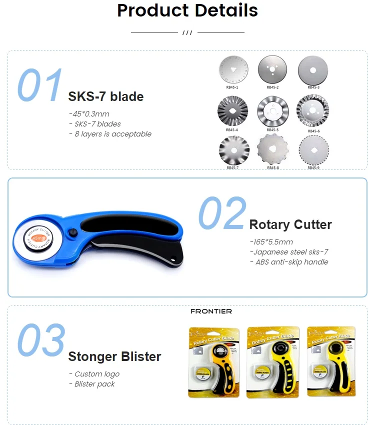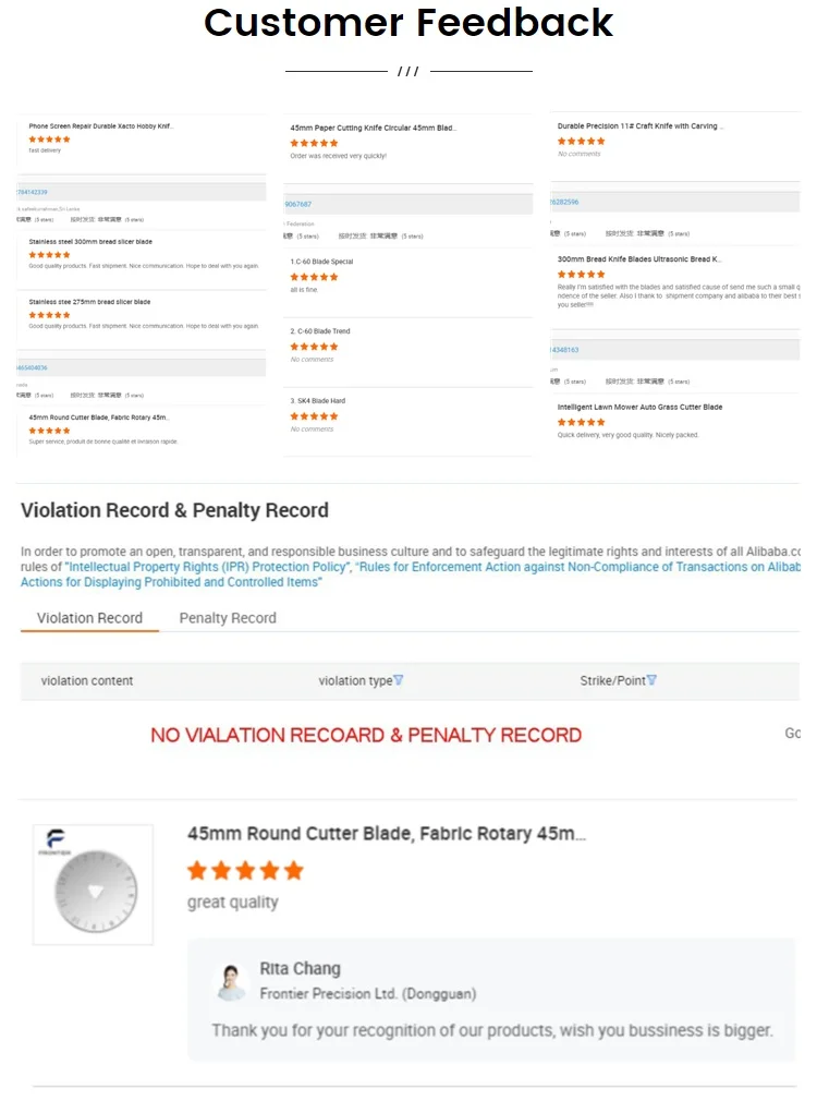 FRONTIER is establised in 1990, work shop more than 8,000 sqm, 2 offices and one shop in the international material zone, we are specialized in designing and manufacturing for Rotary blades, carbide blades, ceramic blades, lawn mower blades, folding knife series, hobby knives series, multi-function knives.