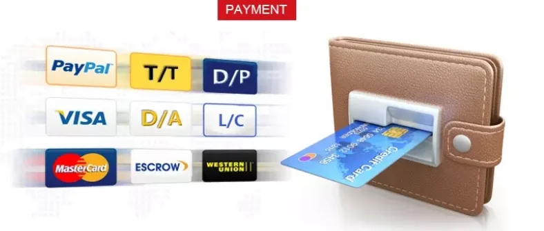 A: We can offer Pay Later ,T/T , Western Union,Cash,Escrow, MoneyGram , For small amount,full payment in advance to save bank fee.
