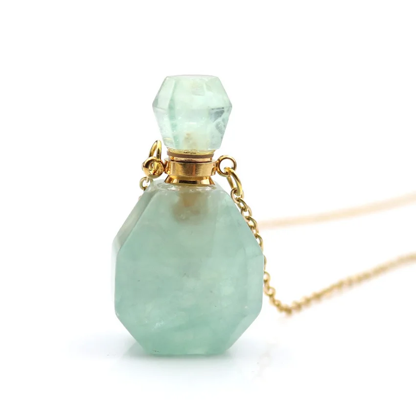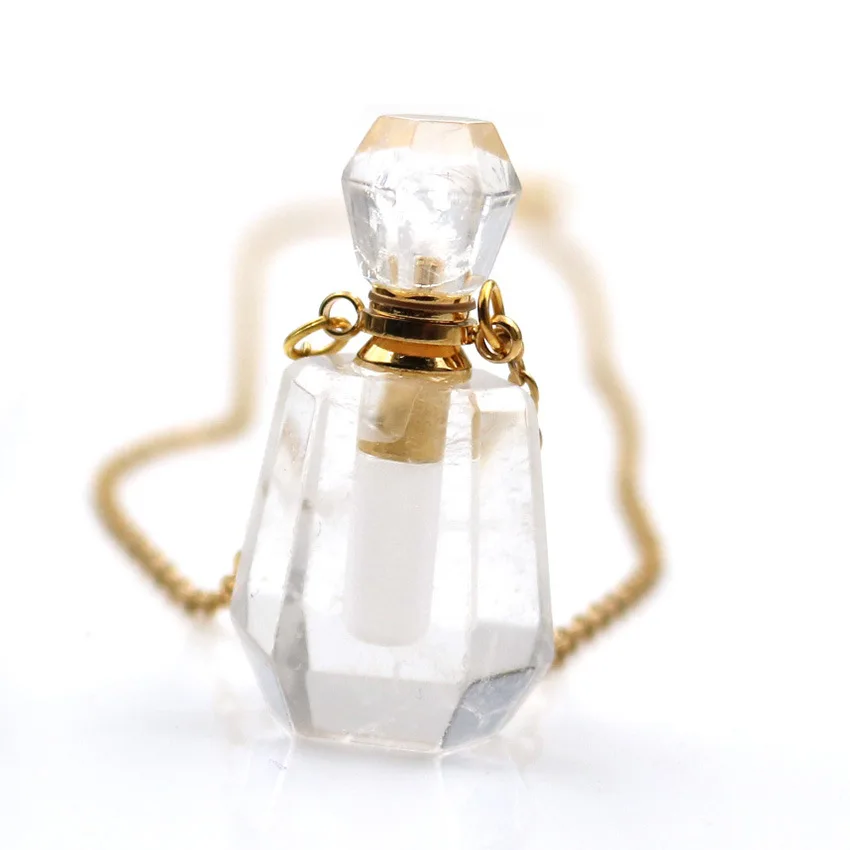 Natural Crystal Gemstone Necklace Perfume Bottle Pendants for Gift