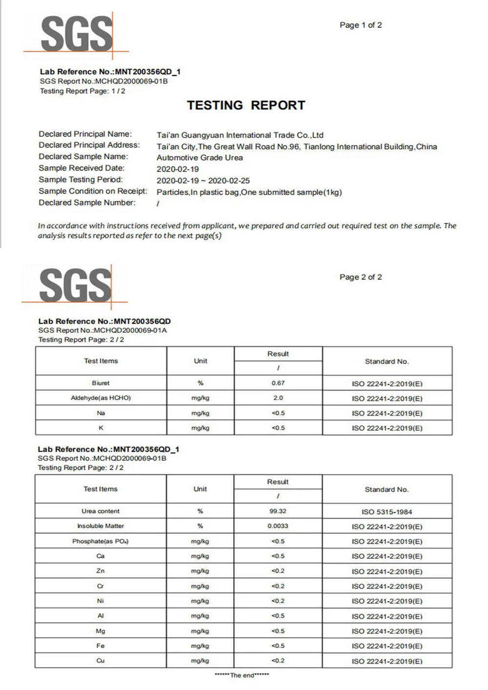 Biuret<= | 1.5 | 1.0 |