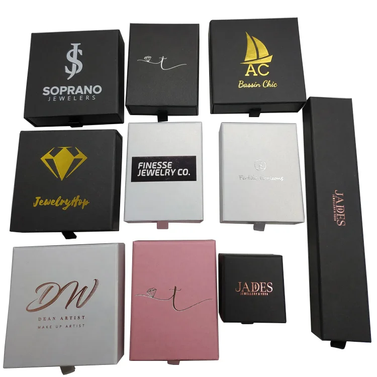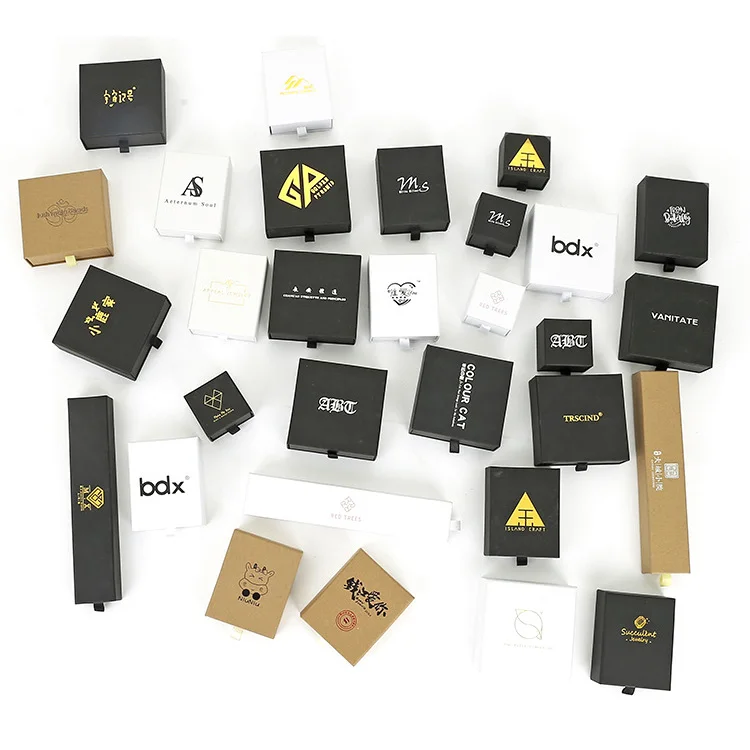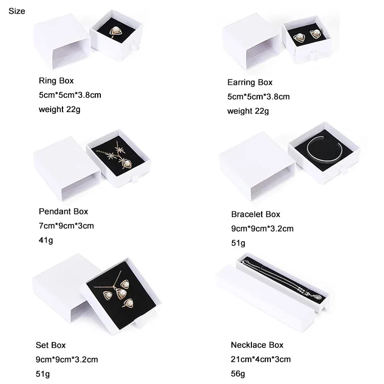 Custom printed logo paper drawer style pendant necklace ring earring bracelet set gift packaging box for jewelry set packaging