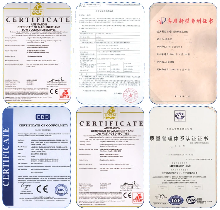 Longkou Clima industry and trade co., Ltd. established in 1988, which specializes in egg tray/egg carton/fruit tray pulp moulding production line. Pulp moulding production line is consisted of three parts, including pulping system, molding system, drying system, among which pulp molding machine include rotary molding machine, reciprocating molding machine and so on. Our equipments are famous for its energy saving, reliable quality, high automatic, simple operation, fewer workers. The same moulding machine can produce various products by changing moulds, and it is easily to operate. So our products are widely sold to Russia, Saudi Arabia,Yemen, Nigeria, Algeria, Gana, Dominica, Egypt, Zambia, Malaysia, Mexico, and in China etc. It’s well received by our customers.
