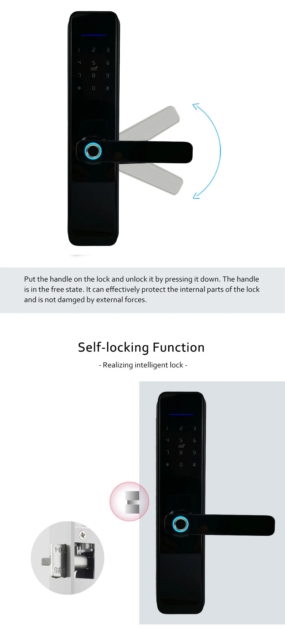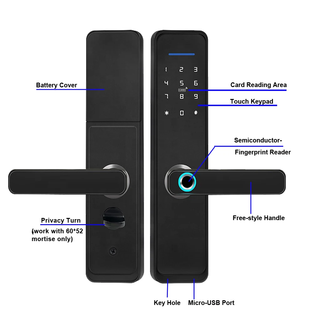 Unlock way | Fingerpint/ App/ Code/ RFID Card/ Key |