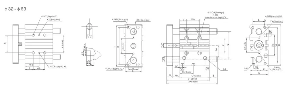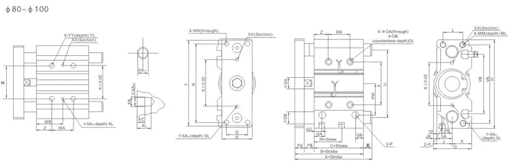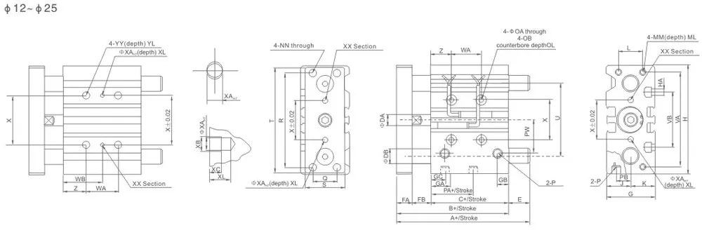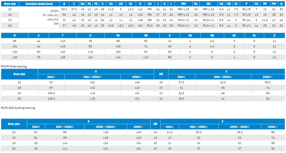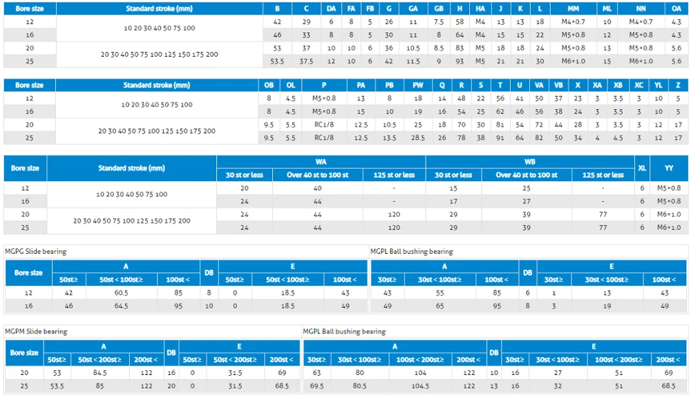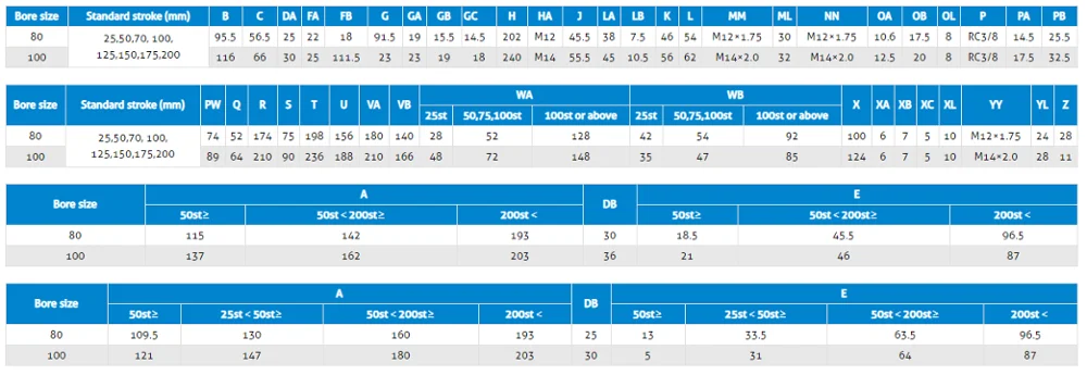 | Bore(mm) | 12 | 16 | 20 | 25 | 32 | 40 | 50 | 63 | 80 | 100 | |