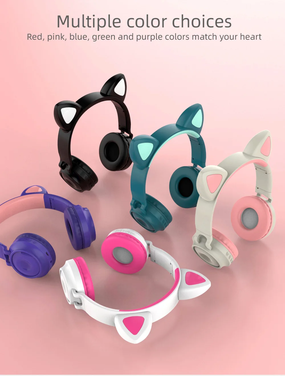 Product Name | Newest wireless earphone foldable cat ear headphone with LED light FM function over-ear headphone gift for kids |