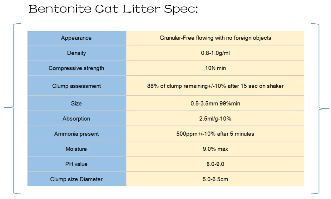 Bentonite Cat Litter Spec: