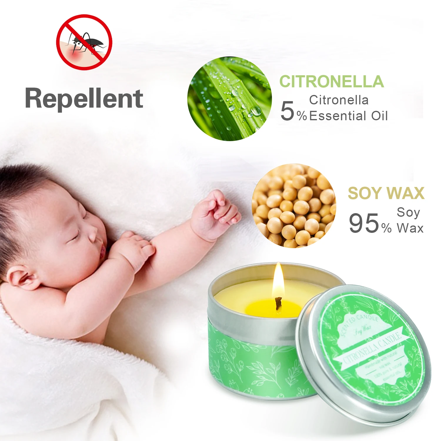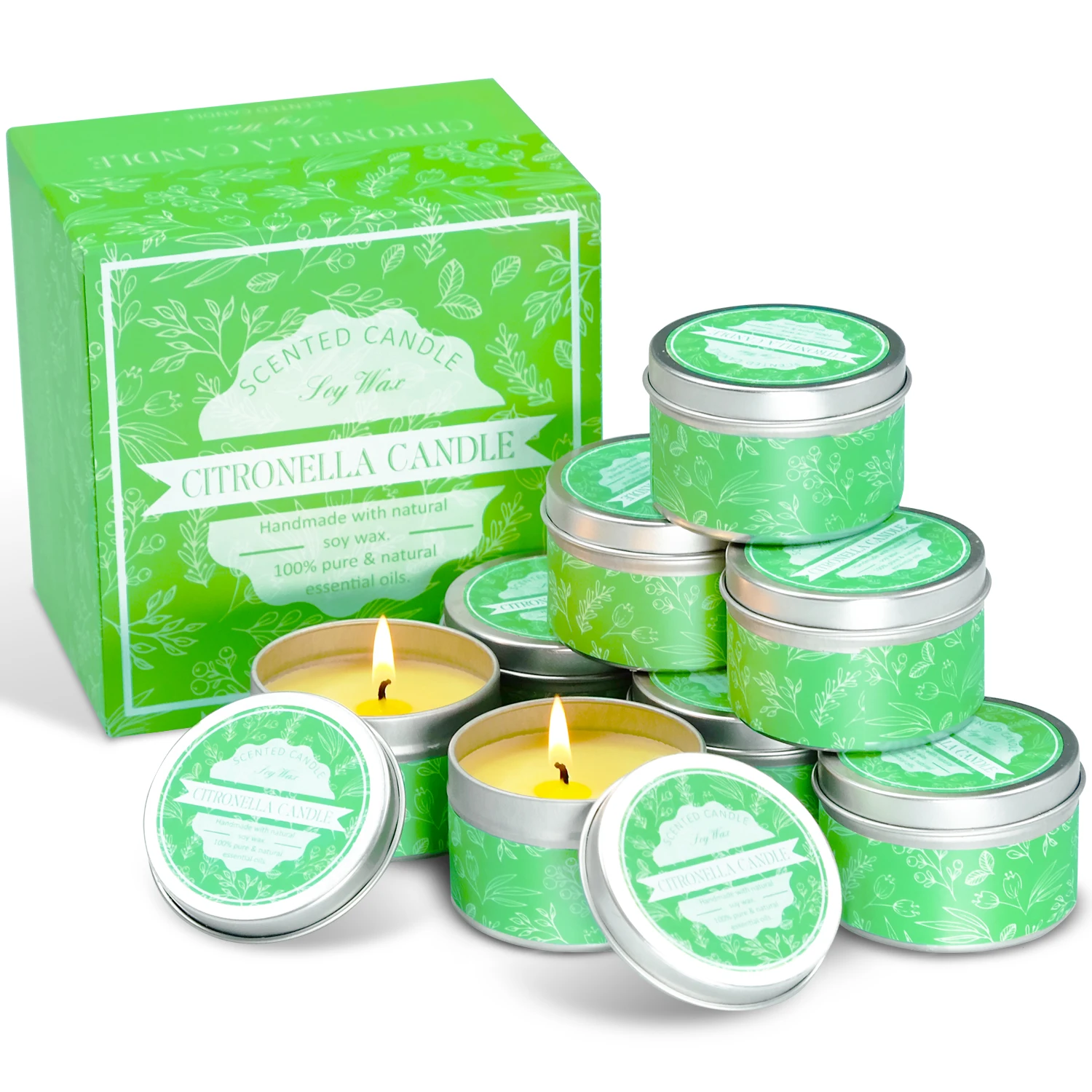 【Natural Soy Wax】-Made from natural soy wax. Along with the lead-free cotton wick, providing a cleaner, longer burn. 【Creative&Eco-friendly】- Each Citronella Candle has a tin. When the candle burns out, the remaining empty tin can be recycled for DIY candle, candle holder or some Succulent Plants holder. Perfect for gift to your family, and friends