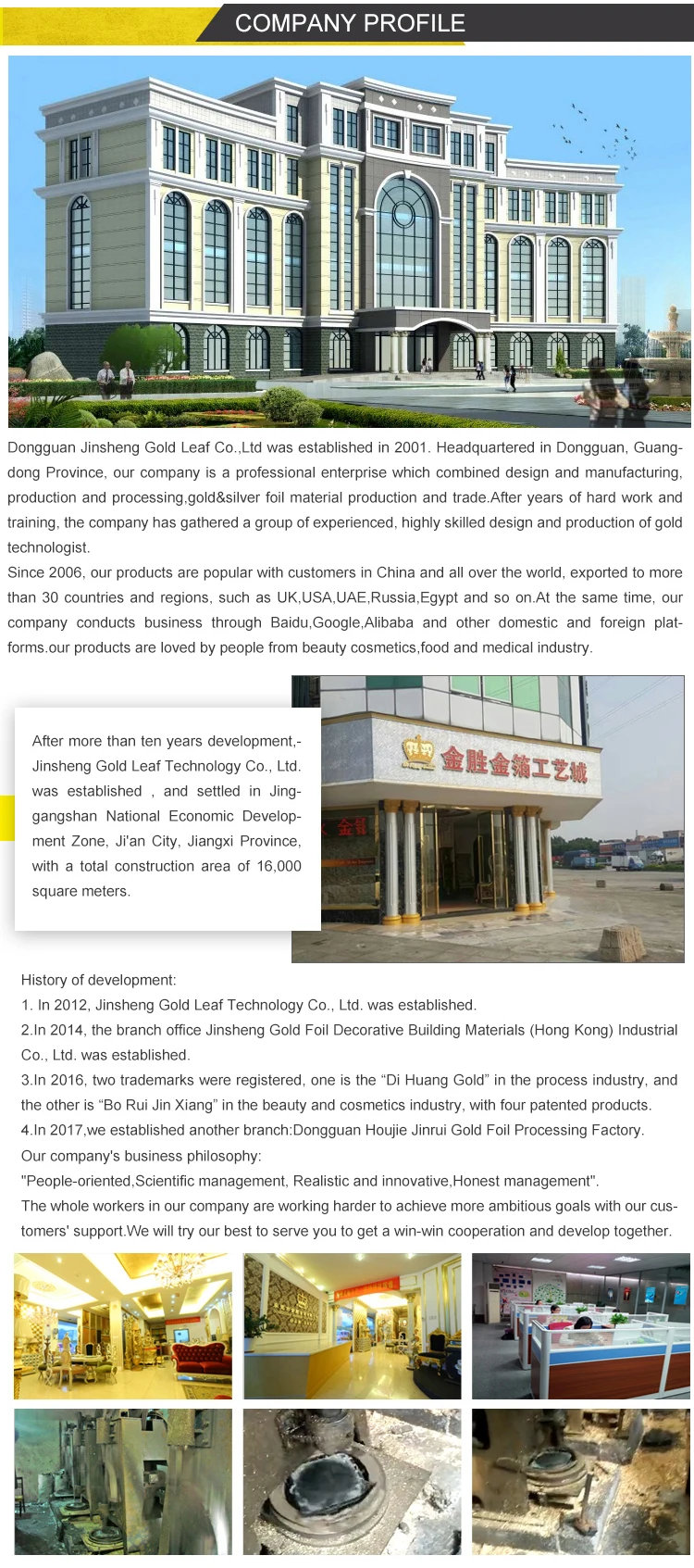 2. We are the manufacturer so we can afford a competitive price and more detail information of 24k pure gold leaf. And we enjoy a good reputation in the business circle.
