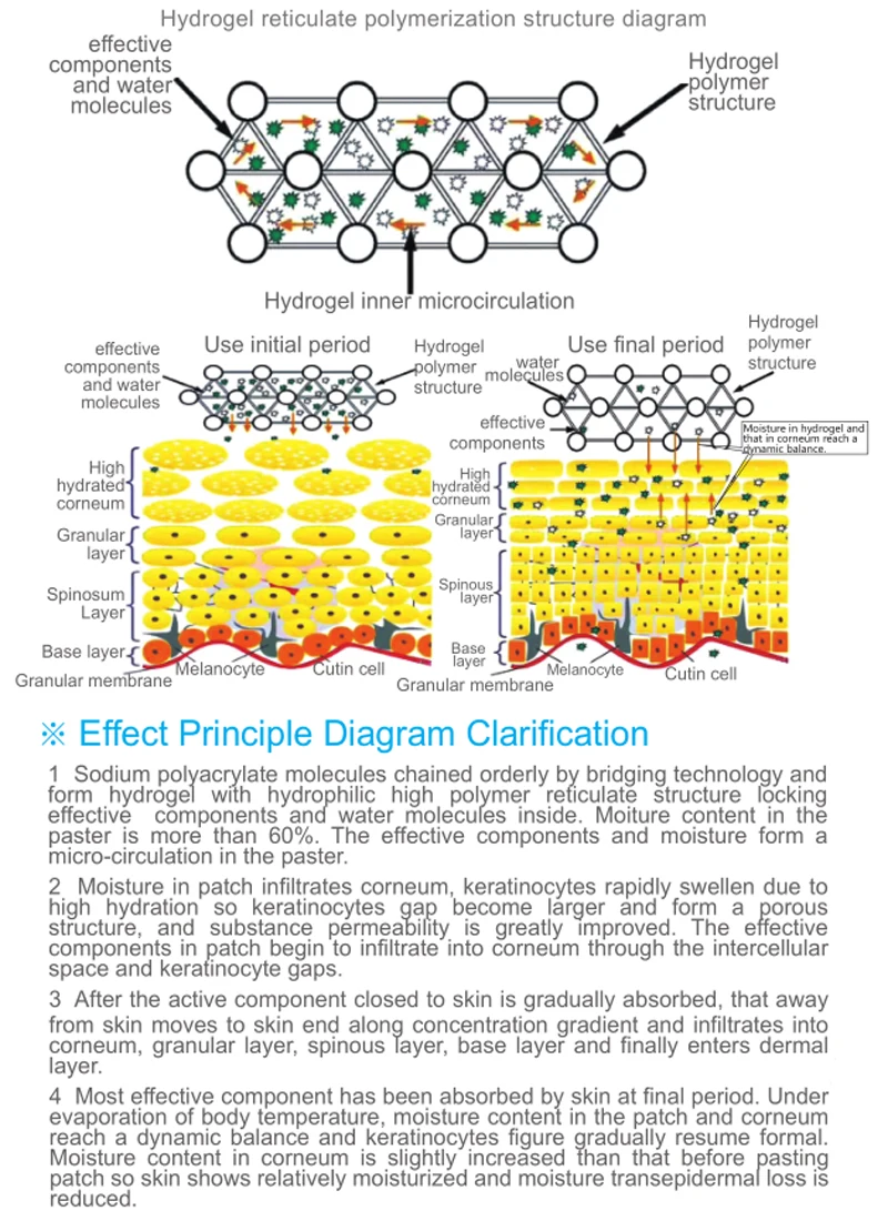 1 | Pharmaceutical(external) hydrogel patch, cooling gel pad, antipyretic paste | Sticky. It has adhesive force. By using a cross-linking agent, a gel with adjusted strength and water resistance can be made. | since our PAAS copolymer PH value is 5.5~7.0, so the hydrogel is Non-irritating to the skin, Skin-friendly, No filiform, good viscosity, environmental friendly. | ||