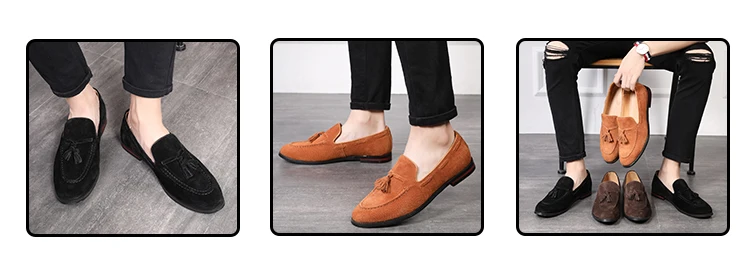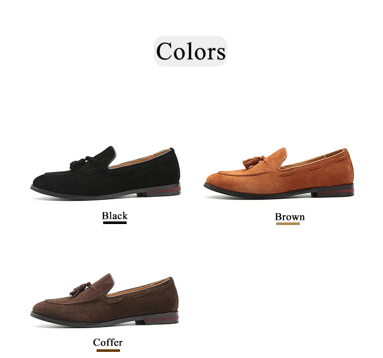 37 48 Big Size Black Brown Genuine Leather Tassel Loafers Shoe Women Men Suede Round Toe Loafers Wedding Dress Shoe 181