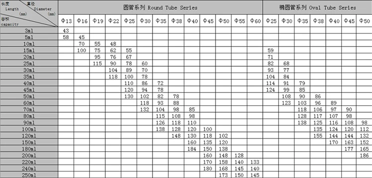 Length | adjusted within the range of tube capacity 3ml to 250ml | ||||