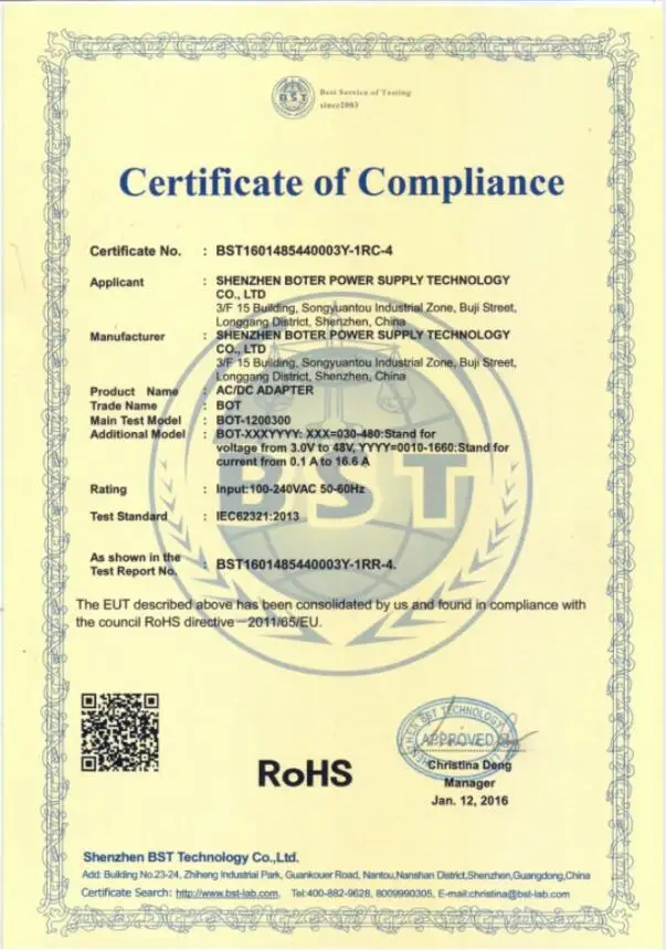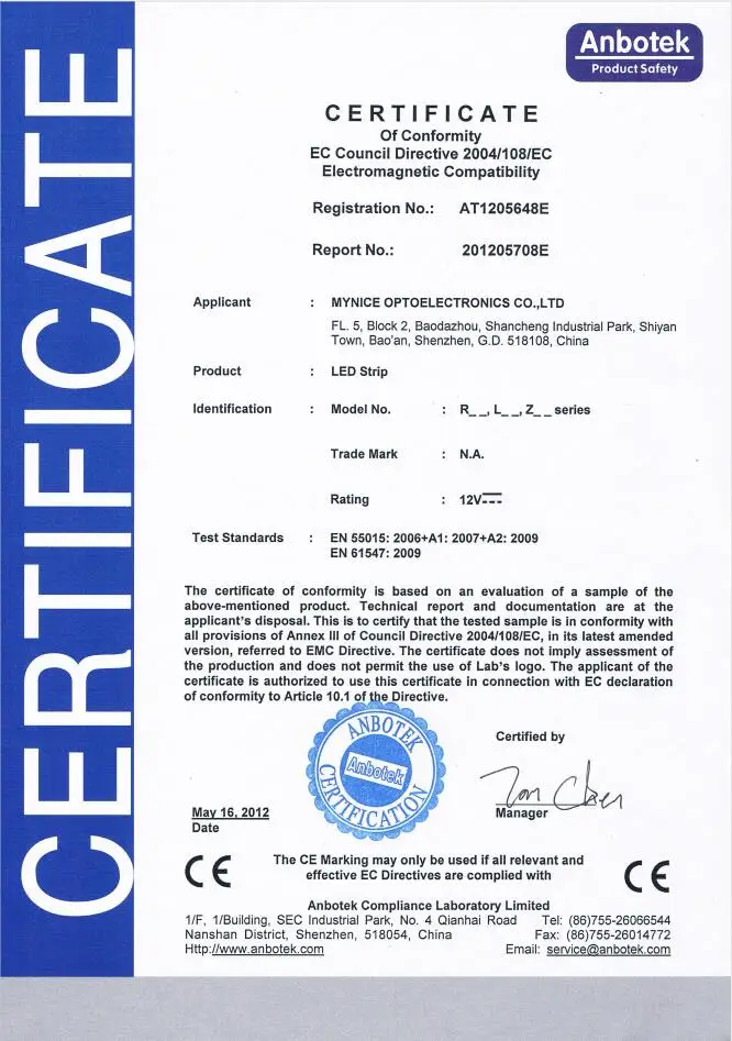 Certificate | CE/ROHS | |