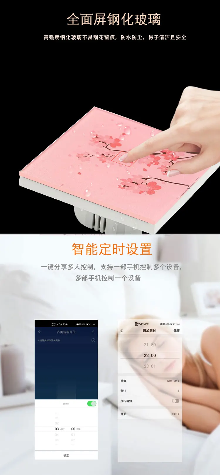 It is a very popular smart home product, good looking with touch panel. With this product, you can control your lights via 3 methods: touch the panel, wireless control via smart life APP or voice control via alexa or google home. You can easily use the wifi switch when you get the product. Besides, this is Europe standard with world wide working voltage AC100V-250V. Europe standard switches suitable for most european countries including UK. We have US model as well.