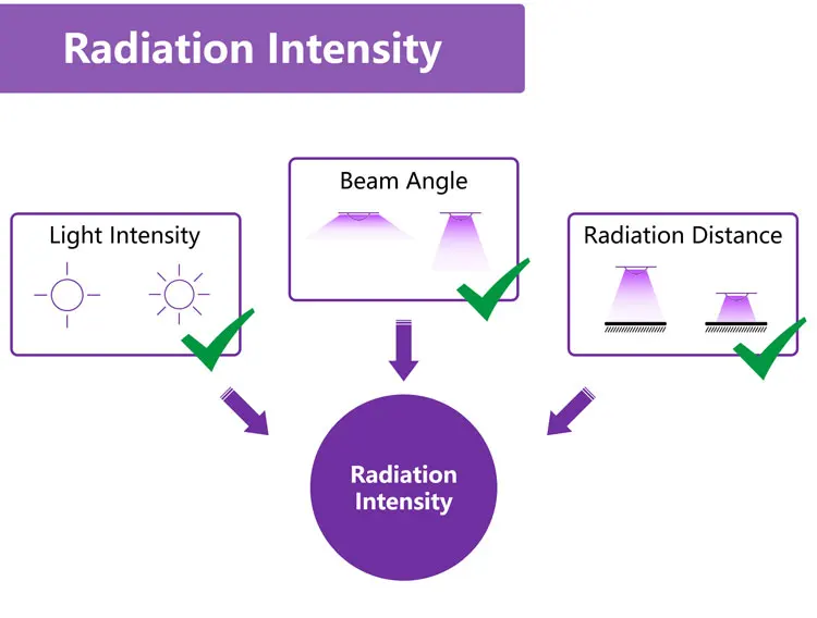 UV irradiance | Center area in box:240μW/cm² Close to object surface:5000μW/cm² |