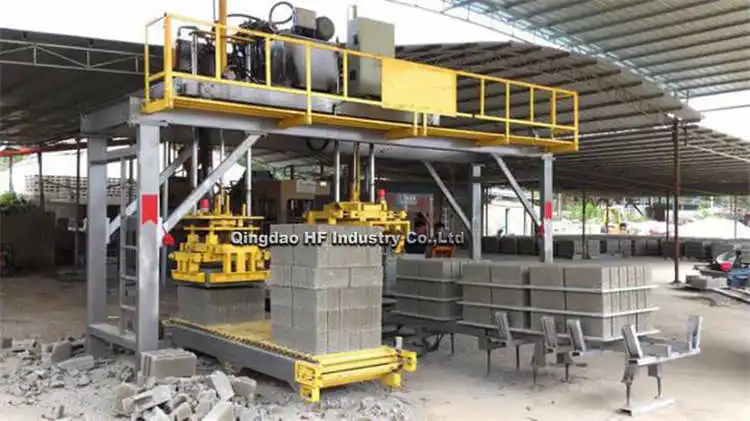 1.factory price brick cuber machine The stacking way cured blocks that commonly used in the simple automatic block making machine plant is by manual work, which is known to be greatly inefficient and high labor-cost. By comparison, HF automatic block cuber is developed with high automation, which can stack the block more quickly and efficiently. The device highly improve the rate of finished products, reduces the labor’s working intensity and save the labor cost. It can be used for concrete/ cement blocks.