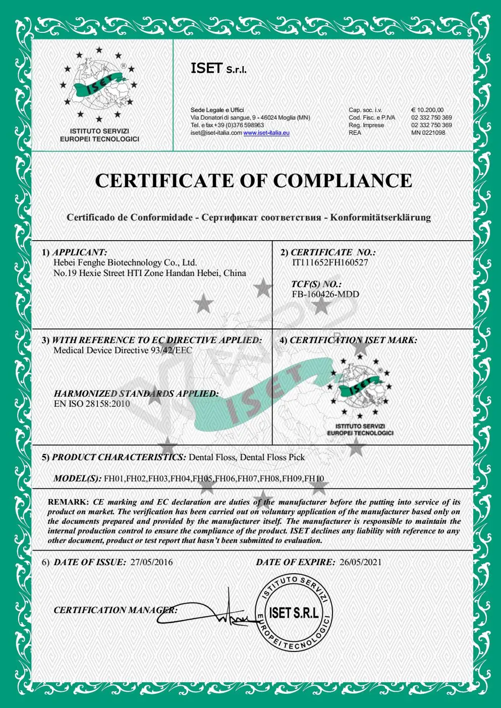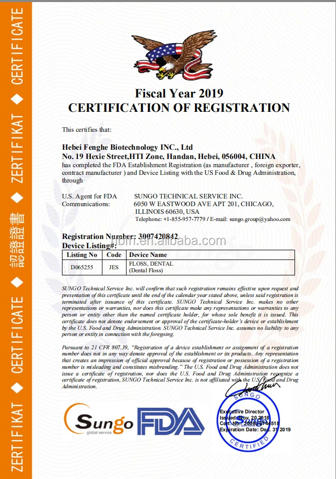 Hebei Fenghe Biotechnology INC.,LTD. founded in 1999, is specialized in researching and producing dental floss. For super quality and best service, all dental floss products with TUV/ISO /CE approved!