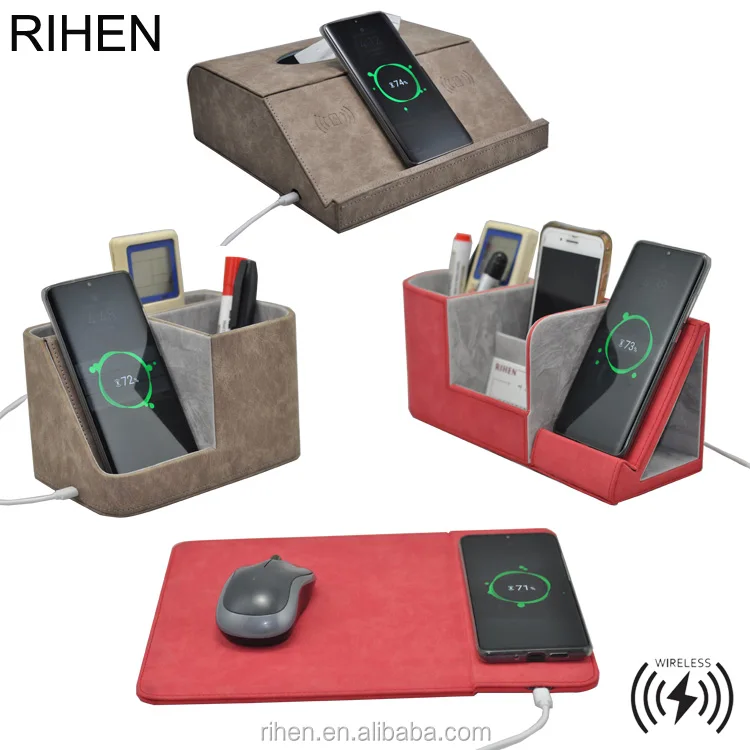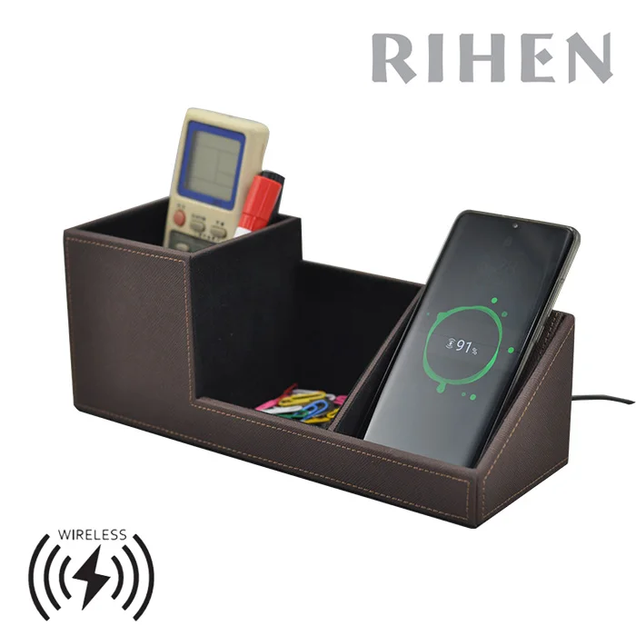 PU Leather desktop organizer wireless charger