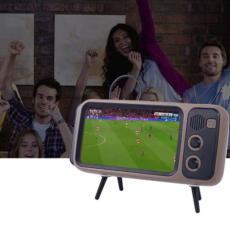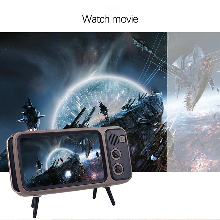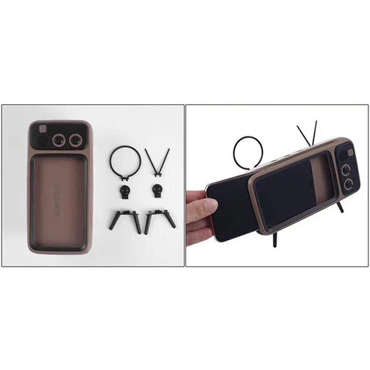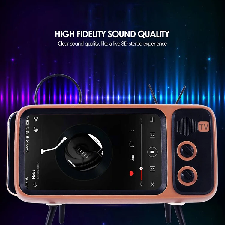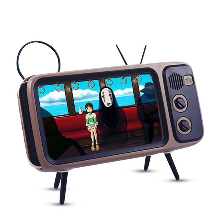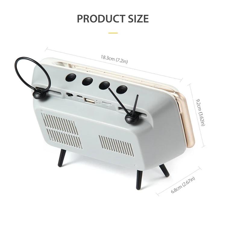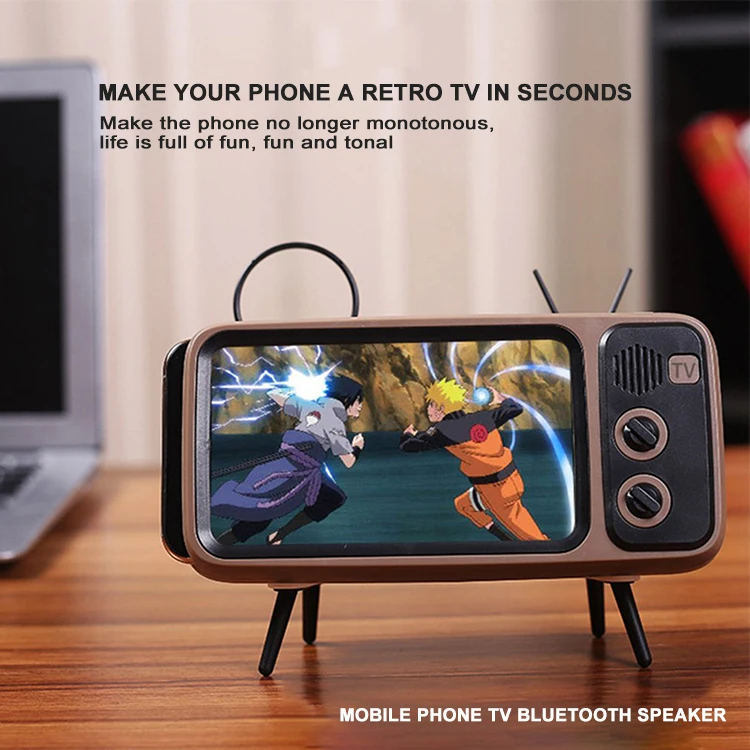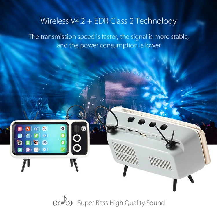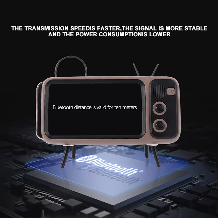 Vancel Handsfree Blueteeth Wireless Retro Tv Shape Speaker Play Mobile Phone Holder Vintage Powerbank 1500Mah