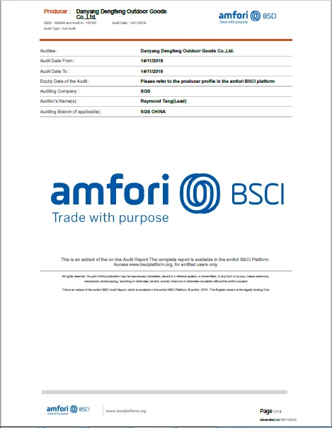 *Outer fabric | 220g /㎡ 100% cotton canvas, W/R | |