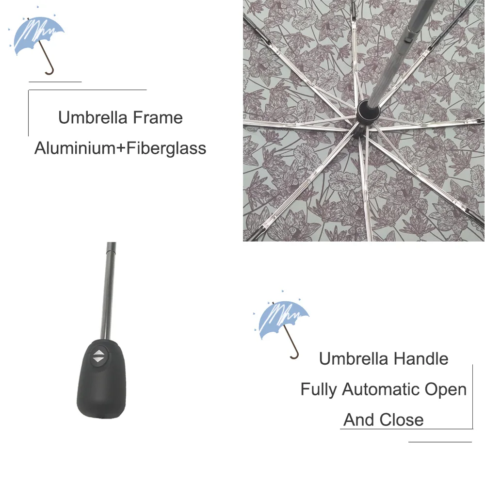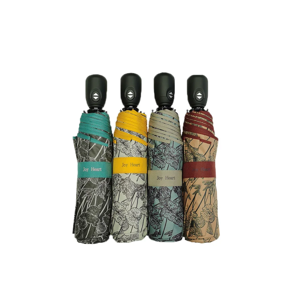 Product Name | Lotus Flower Pattern Fabric Fully Automatic Three Folding Umbrella With Customized |