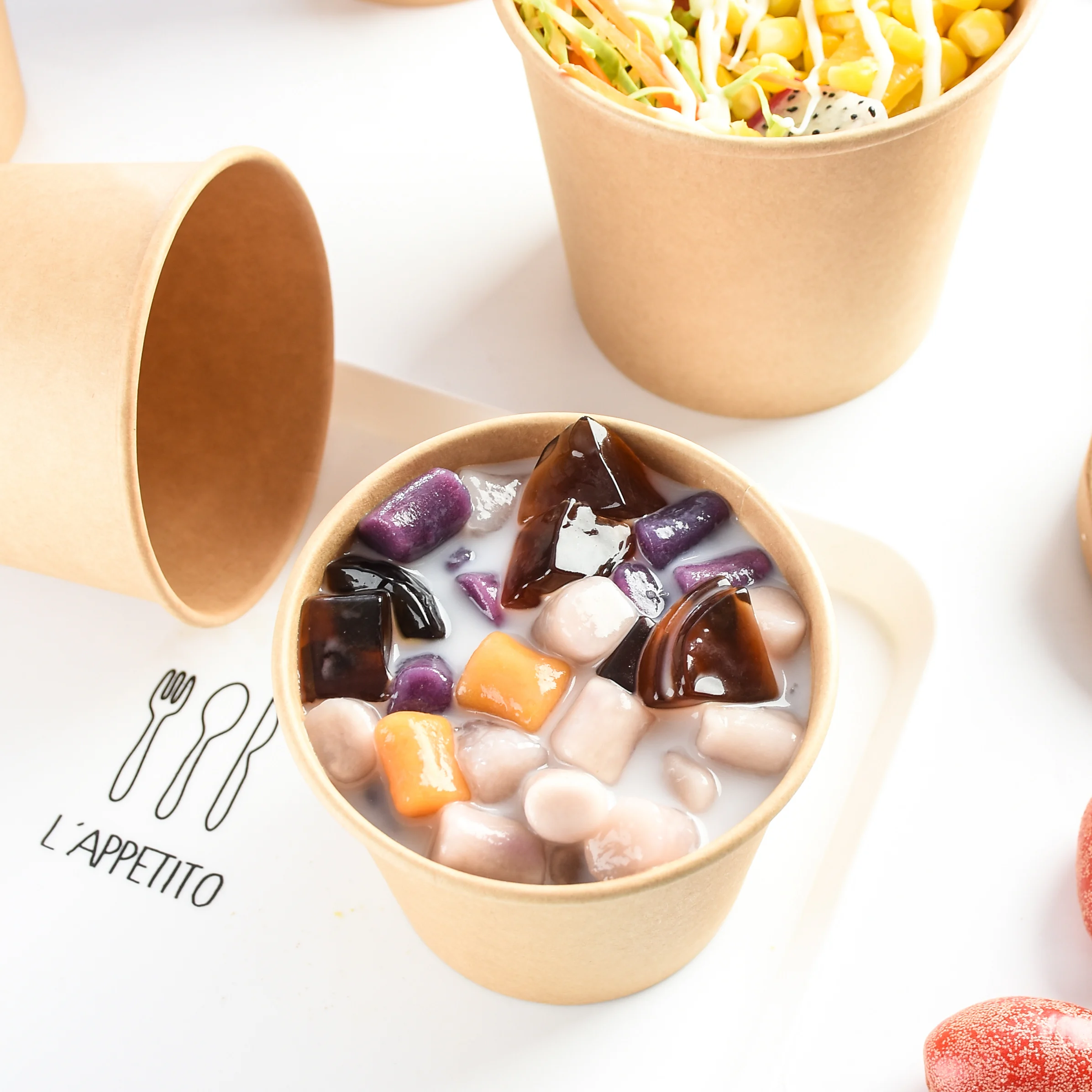 Can used for filling porridge, soup, dessert, noodles, salad, fruits and roast meat containers.