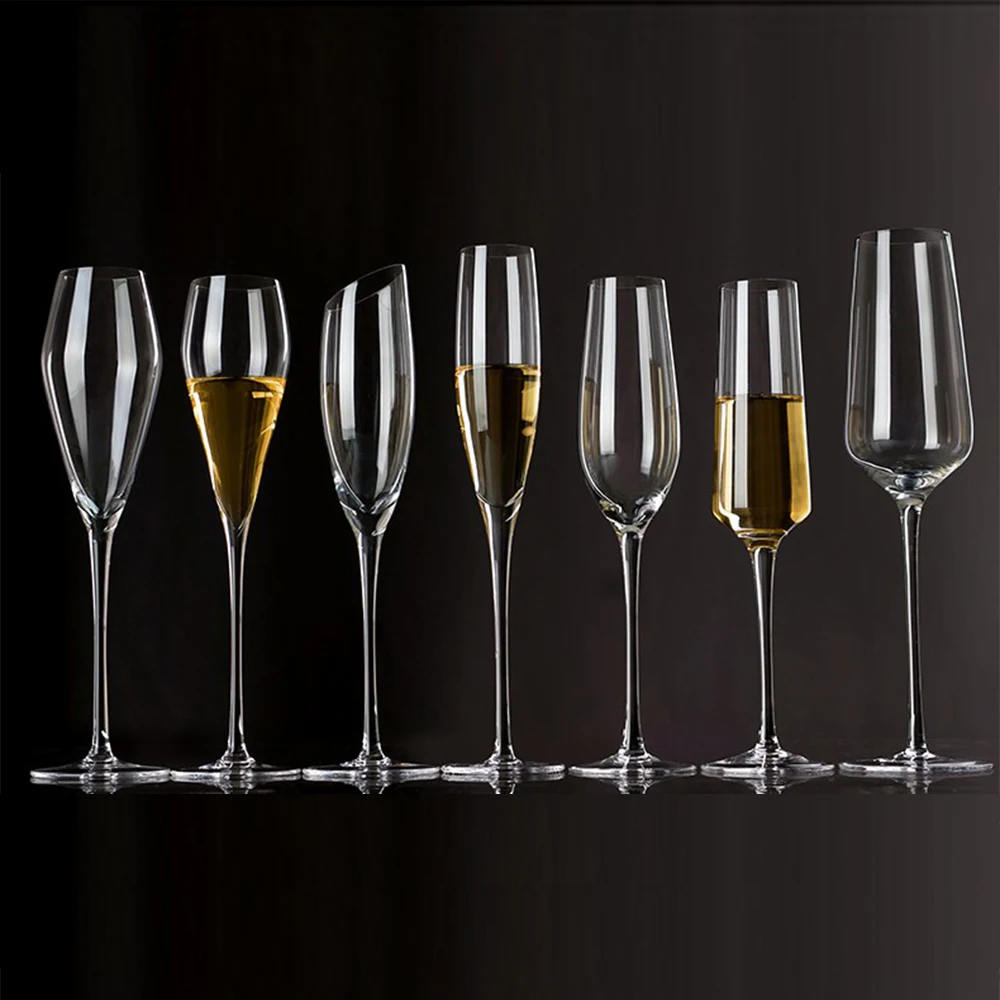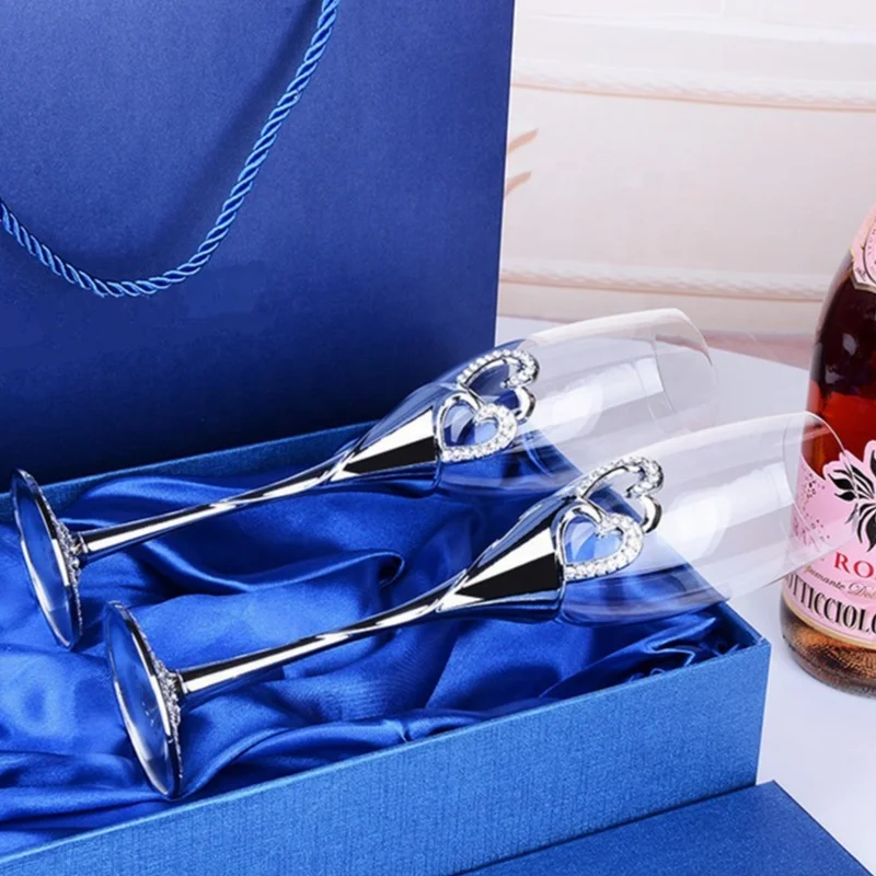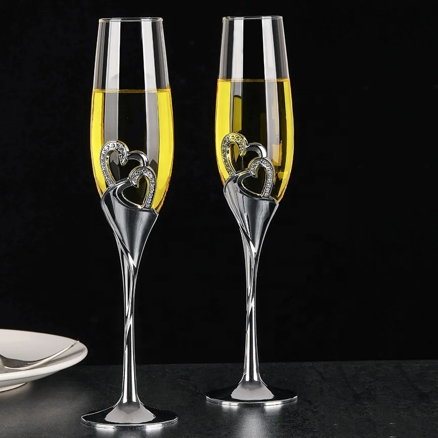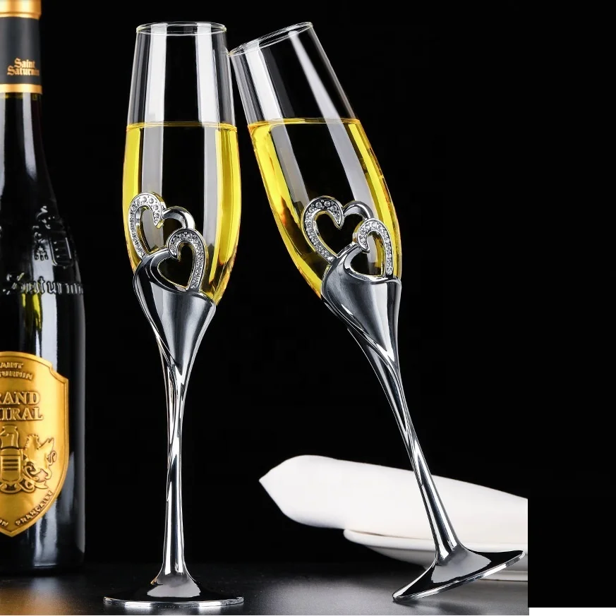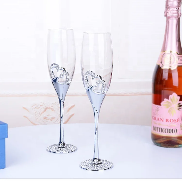 Customized Cristal Fancy Champagne Flutes Glass with diamond metal stem