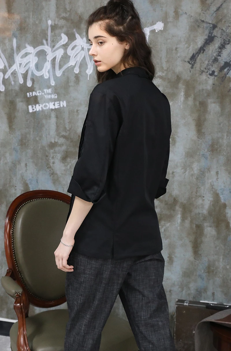 Left sleeve thermometer pocket Half sleeve with turn-back cuffs